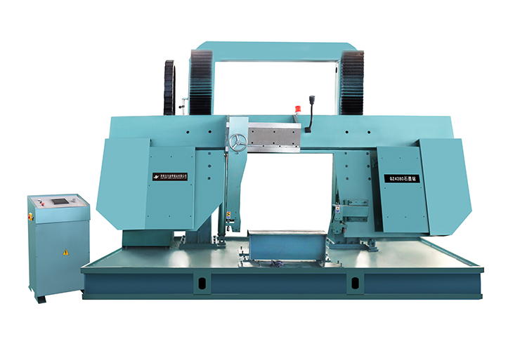 石墨帶鋸床均為定制產品,金鋒鋸業是山東大型石墨帶鋸床研發生產基地,石墨帶鋸床支持半自動、全自動運行,今天我們介紹的石墨帶鋸床GZ4280屬于為客戶量身定制產品,鋸床具有龍門柱設計穩定、直線到軌導向、全自動智能切割、切割精準、生產效率高等主要優勢,是批量下料的理想設備。