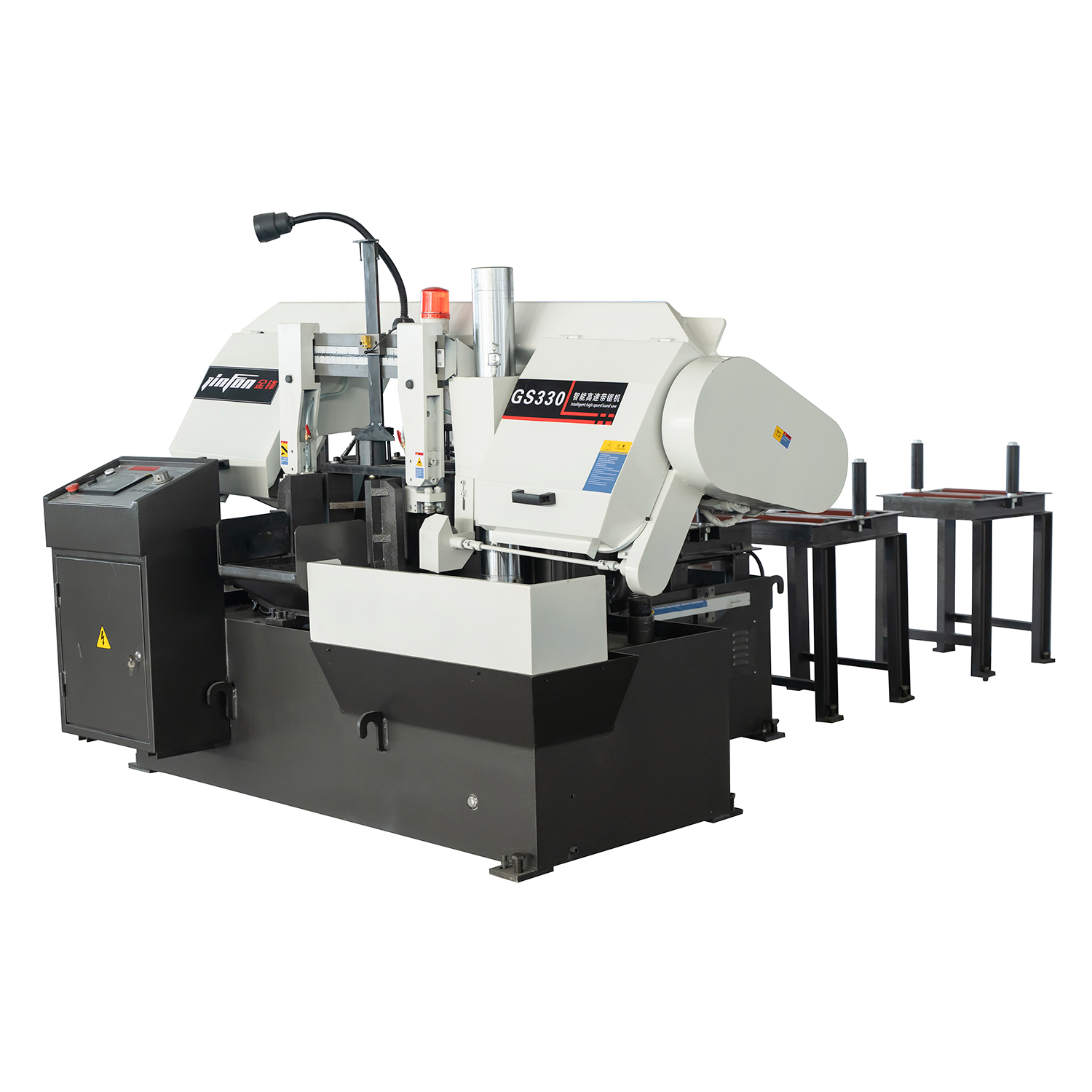 GS330數(shù)控帶鋸床采用PLC控制、彩色觸摸屏操作、可設(shè)置一組或多組自動生產(chǎn)、手動與全自動模式自由切換、可以對工作任意定位調(diào)控切割、光柵尺控制送料精度,GS330數(shù)控帶鋸床具備自動送料、高精定位、自動切割、全程監(jiān)控、智能調(diào)速、斷帶保護、自動出料、自動清潔等主要功能,配置的監(jiān)控系統(tǒng)能降低鋸條損耗,防范鋸切故障,在海內(nèi)外市場中,GS330數(shù)控帶鋸床的卓越性能與廣泛的適用度都深受各領(lǐng)域客戶們的認可。