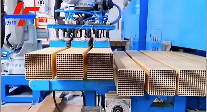 濟南北方金鋒鋸業有限公司為安徽客戶量身定制的催化劑專切鋸床V-200已投入生產,本鋸床為雙頭鋸切設計,主要用于切割脫硝催化劑、蜂窩式脫銷催化劑的切割加工,全自動流水線生產,通過PLC控制面板,鋸床具有自動送料、自動進刀、智能調速、全程監控、紅外高精定位、自動取料、鋸架間距自動調節等主要功能(請關注金鋒鋸業抖音企業賬號,觀看催化劑自動生產線的工作流程,不定期更新定制設備介紹與推薦)。