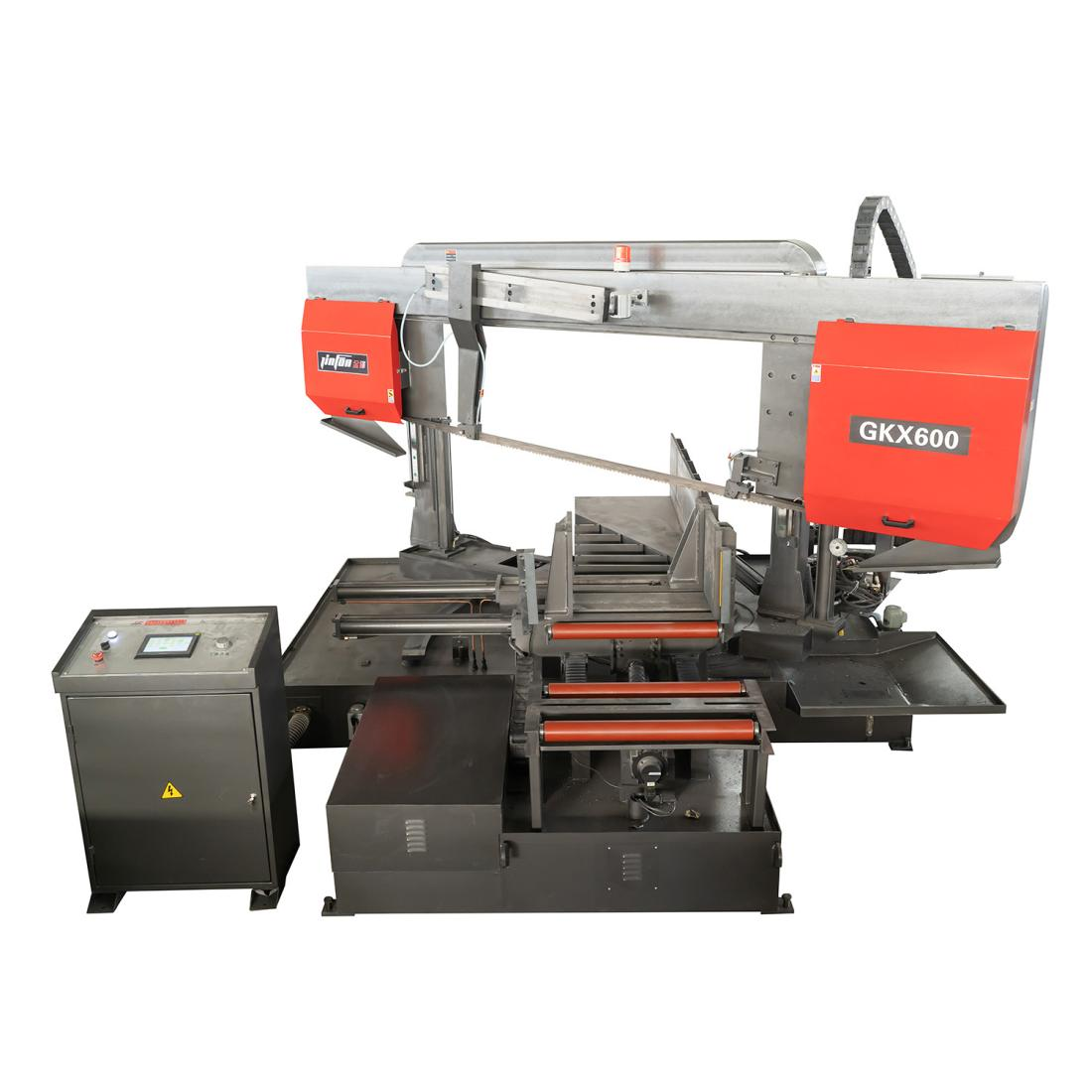 數控轉角帶鋸床可豎切、可轉切,通常可以0~60°旋轉角度調節,客戶有特殊角度鋸切需求可來電定制,數控轉角帶鋸床應用廣泛,技術領先,功能多樣,帶鋸床的鋸切精度高,可以鋸切多種單一、成捆、材質不同的工件,鋸床采用PLC控制系統,彩色觸摸屏操縱,在屏幕上選好所需鋸切組數、參數,數控轉角帶鋸床即可按照程序設定進行自動切割。