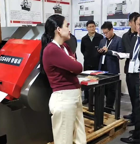 此次展會上,金鋒鋸業帶鋸床憑借卓越的性能和創新的設計,成為全場矚目的焦點。金鋒鋸業GS400雙立柱帶鋸床是一款全自動數控帶鋸床,適用于批量生產和連續切割。PLC控制系統,可設置一組或幾組數據連續切割。智能彩色觸摸屏設置,操作簡單。運行平穩無噪音,切割出來的材料光滑零瑕疵。這款鋸床一經展出,就吸引眾多外國客戶前來咨詢,其優越的質量、高效的性能引得周圍連連贊嘆,更有幾位外國客戶現場就簽訂了幾款鋸床訂單。