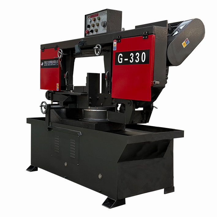 G-330是一款小型旋轉(zhuǎn)角度鋸床,在切割物料時,所切割的物料不動,鋸架可正向旋轉(zhuǎn)0°-45°或反向旋轉(zhuǎn)0°-60°,適合鋸切有角度要求的各類角鋼、圓鋼、矩形管等。這款鋸床引進(jìn)和吸收國外同類鋸床的性能特點(diǎn),液壓平衡油缸,高強(qiáng)度平衡彈簧及液壓無極調(diào)速,實(shí)現(xiàn)高效、精準(zhǔn)鋸切。本機(jī)擁有精巧緊湊的外觀設(shè)計(jì),有效減少對車間面積的占用。同時,其輕量化結(jié)構(gòu)確保了搬運(yùn)移動便攜,可根據(jù)生產(chǎn)需求靈活部署。G-330角度鋸床還可選配數(shù)控轉(zhuǎn)角,自動送料系統(tǒng),實(shí)現(xiàn)自動化切割,不僅節(jié)省了人力,還使鋸切更加精確、生產(chǎn)效率大大增加。