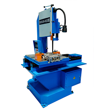 床臺不動型是最常見、最基礎的立式鋸床結構,通常為小型立式鋸床采用。鋸床工作臺和機頭都是不動的,操作人員手動推動工件,完成鋸切。非常適合小工件進行簡單的直線或曲線切割,適合金屬加工車間的零星下料。切割的精度依賴操作者的技術和經驗,不適合批量加工且尺寸要求一致的工件。