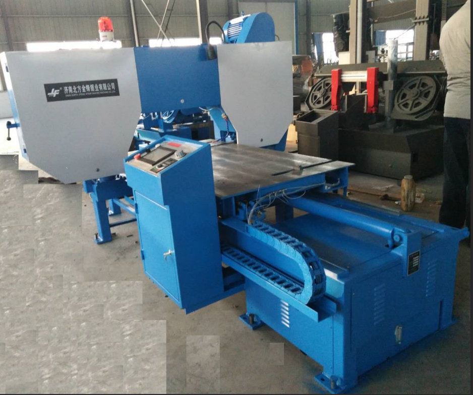 6、鋸架右側加裝導向輪裝置,鋸切過程中該導向輪始終頂著工件,彌補了夾鉗過低鋸切時切割力可能把工件拉動、造成鋸條非正常損壞等缺陷。