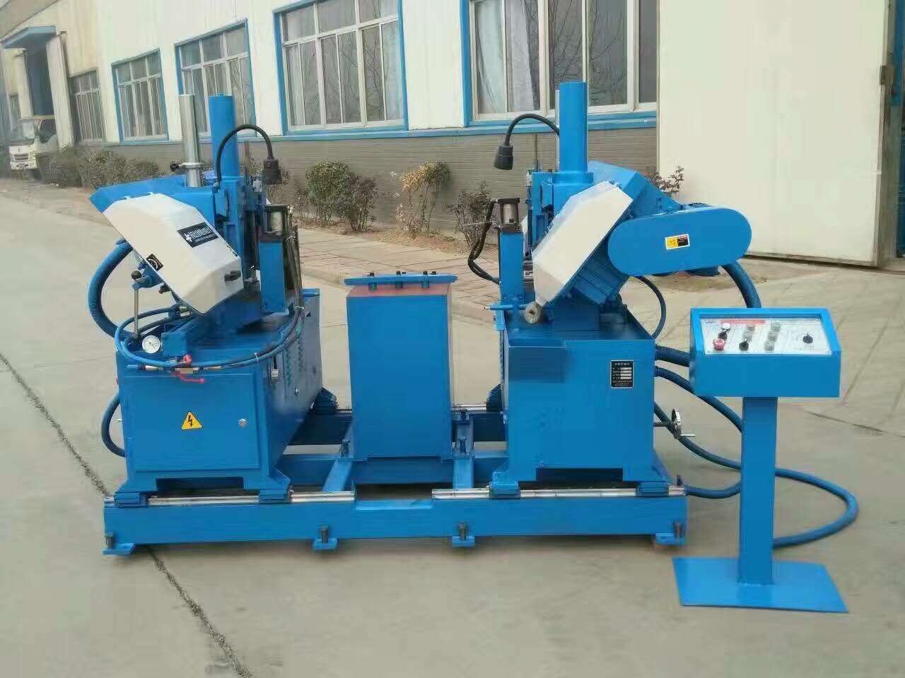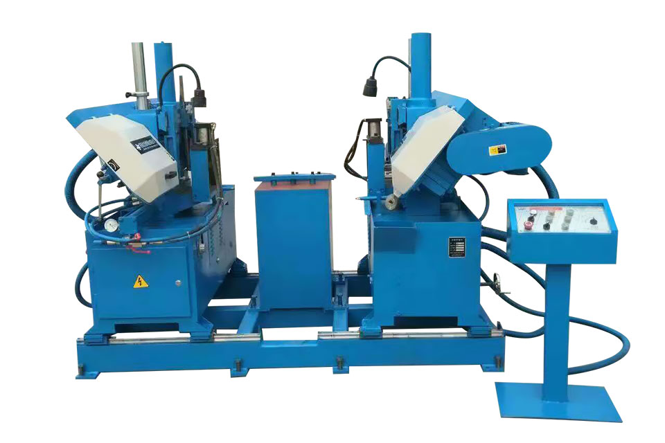 1、鋸床采用雙機頭立式橫切結構,方便工件的裝夾固定,液壓進刀,穩定強,鋸切平穩。