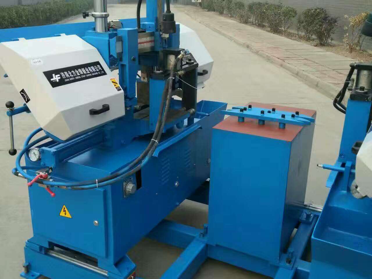 4、合理的鋸帶導向裝置和進切割端的加緊方式,有效的延長鋸帶壽命,可移動鋸條導向裝置和側壓緊裝置共同運動,結構穩固、運動靈活。傳動件往精密平衡矯正,減少震動,鋸切速度平穩,此精密系統可防止鋸條非正常破壞,達到理想鋸切效果。