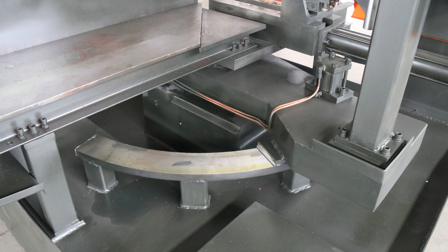 8.合理的鋸帶導向裝置,有效的延長鋸帶壽命,可移動鋸條導向裝置和側壓緊裝置共同運動,結構穩固、運動靈活。傳動件往精密平衡矯正,減少震動,下降速度平穩,此精密系統可防止鋸條非正常破壞,達到理想鋸切效果。