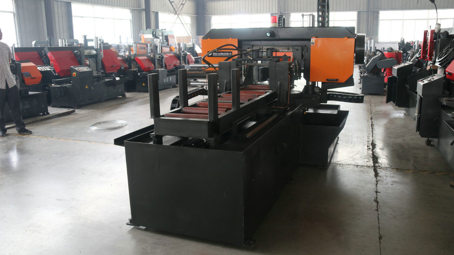 1.鋸床采用龍門式結構,液壓進刀,鋼性好,穩定強,鋸切平穩。