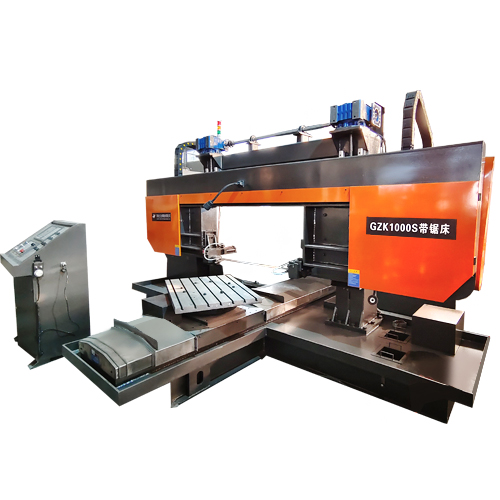 本機床采用雙立柱龍門臥式結構,可垂直鋸切、也可水平鋸切,提高了鋸切效率和鋸切精度。是批量下料的理想設備。